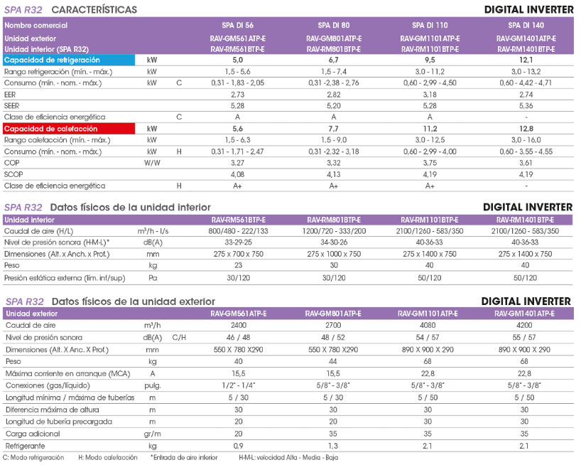 Compuesto por: Unidad Interior RAV-GM561ATP-E + Unidad Exterior RAV-RM561BTP-E