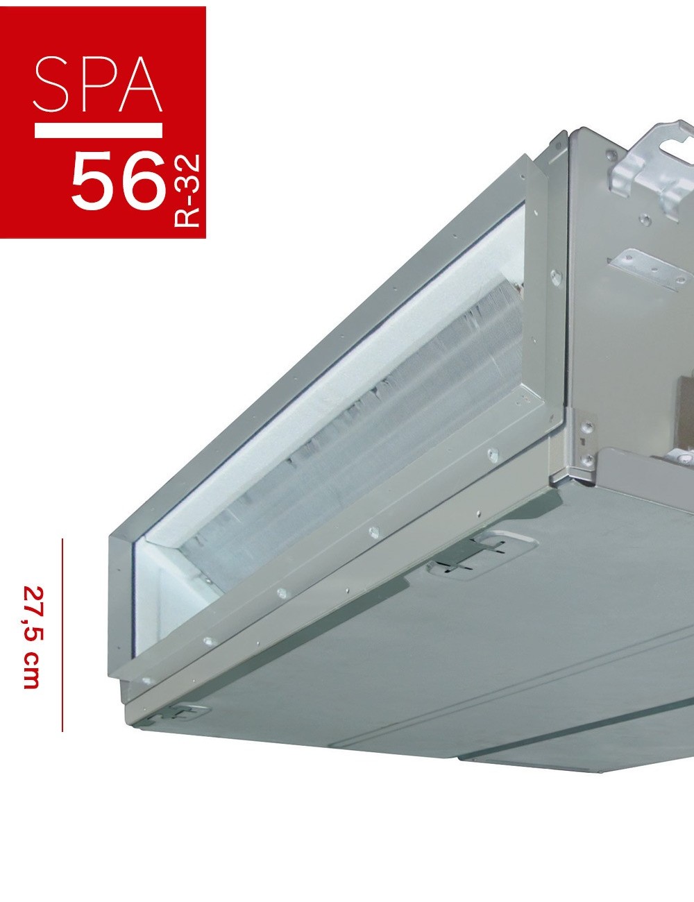 Aire acondicionado por conductos Toshiba SPA 56 Inverter de gas R32, Potencia de 5 Kw en frío equivalente a 4.300 Frig/h y 5,6 Kw en calor, equivalente a 4.816 Kcal/h. Etiqueta energética A/A+. Para viviendas hasta 45 m2 aprox.