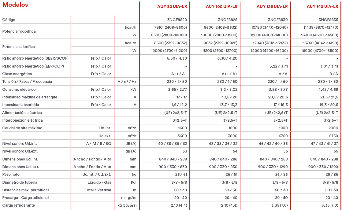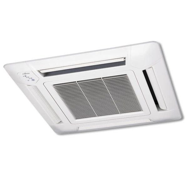 Aire acondicionado FUJITSU Cassette AUY100UIA-LR, de 8.600 Frig/H y 9.632 kCal/H. Gas refrigerante R410A. INVERTER. Etiqueta energética A++/A+ con un consumo medio de 3,2 Kw/hora en frío y 3,02 Kw/hora en calor con una presión sonora de 32 dB. Incluye bomba de condensados. Recomendado para estancias de hasta 90 m2.