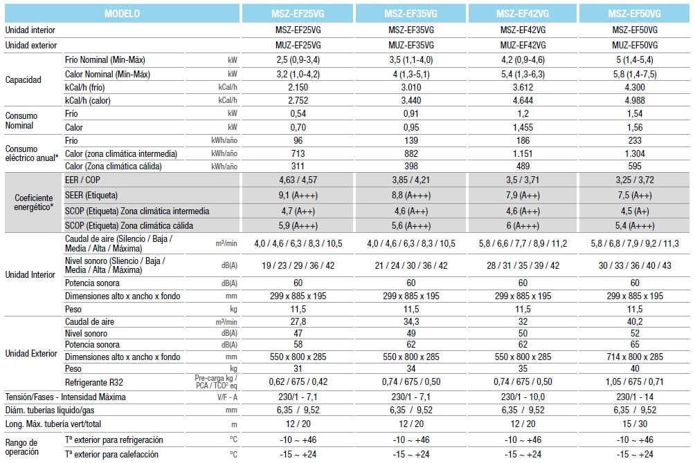 Aire acondicionado Mitsubishi Electric MSZ-EF25VG de la gama Kirigamine Zen con gas refrigerante R-32 disponible en tres colores y con una eficiencia energética A+++/A++. Su potencia es de 2.150 Frig/H y 2.752 kCal/H. Nivel sonoro de 19 dB. Control Wifi integrado compatible con Alexa. TECNOLOGÍA INVERTER. Recomendado para estancias de hasta 22 m2.