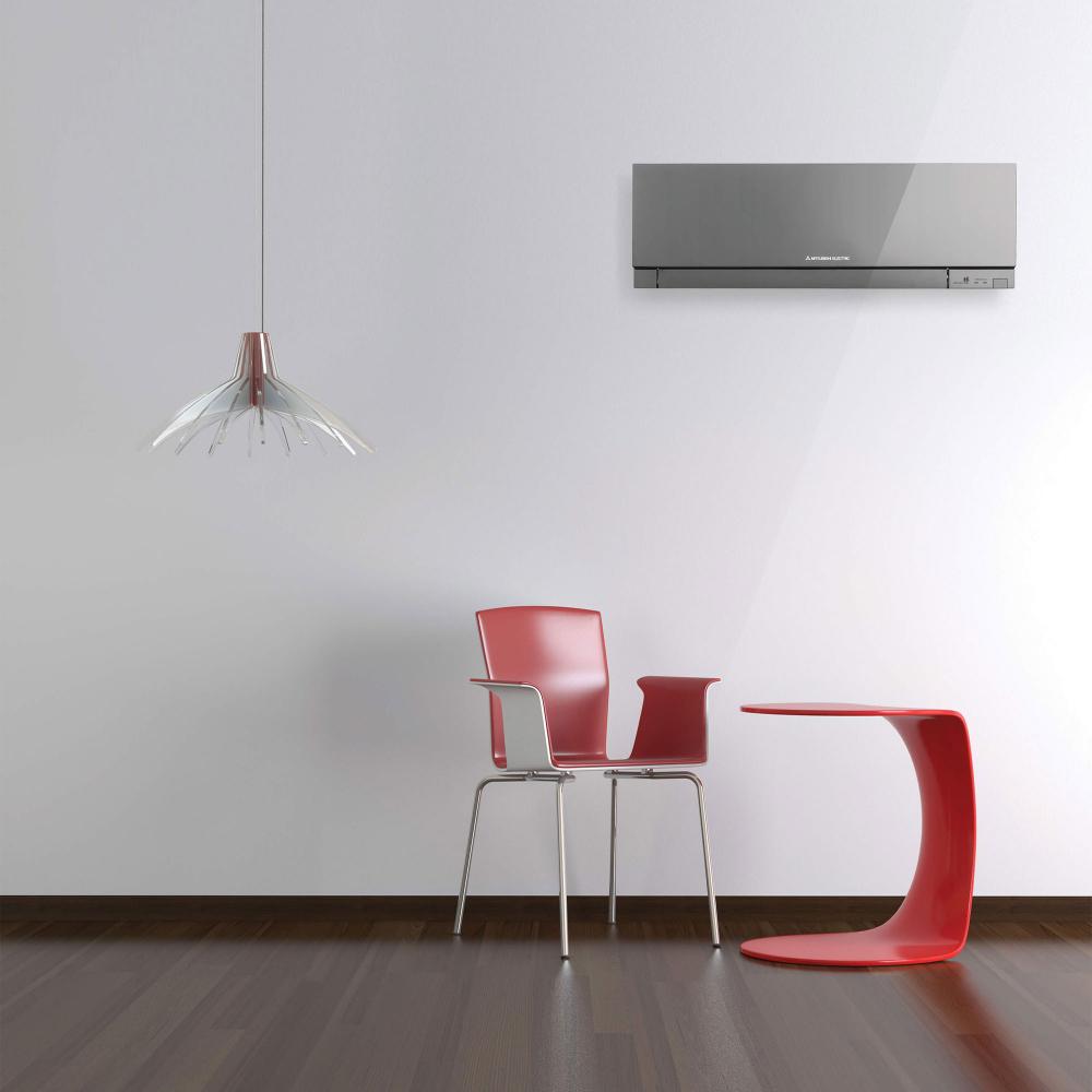 La serie MSZ-EF Kirigamine Zen es la unidad más elegante de toda la gama. Su diseño de panel plano con acabado brillante la convierte en una unidad sobria y moderna que armoniza cualquier decoración. Está disponible en 3 colores, blanco, plata y negro, para poder realizar una instalación personalizada a los gustos de cada persona.